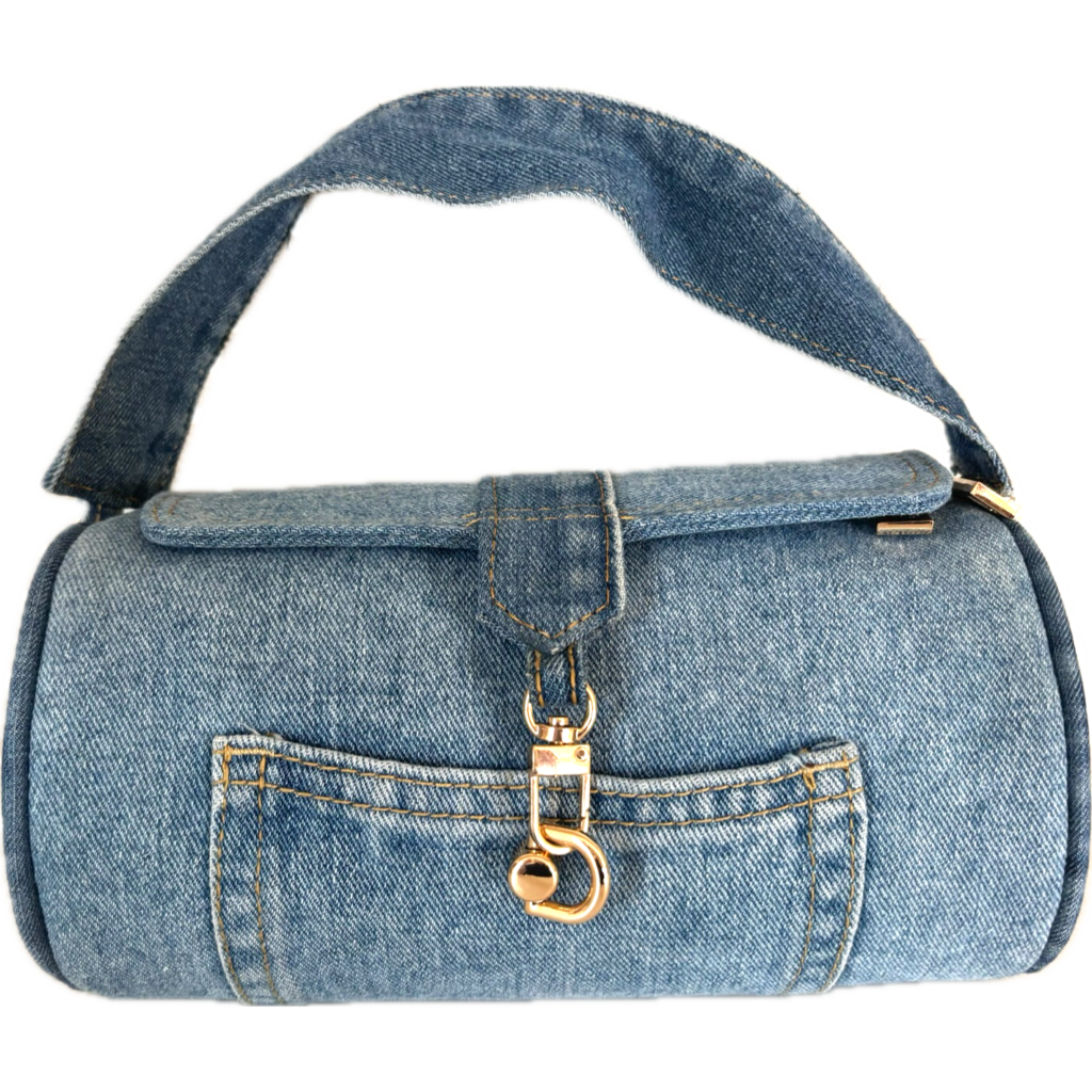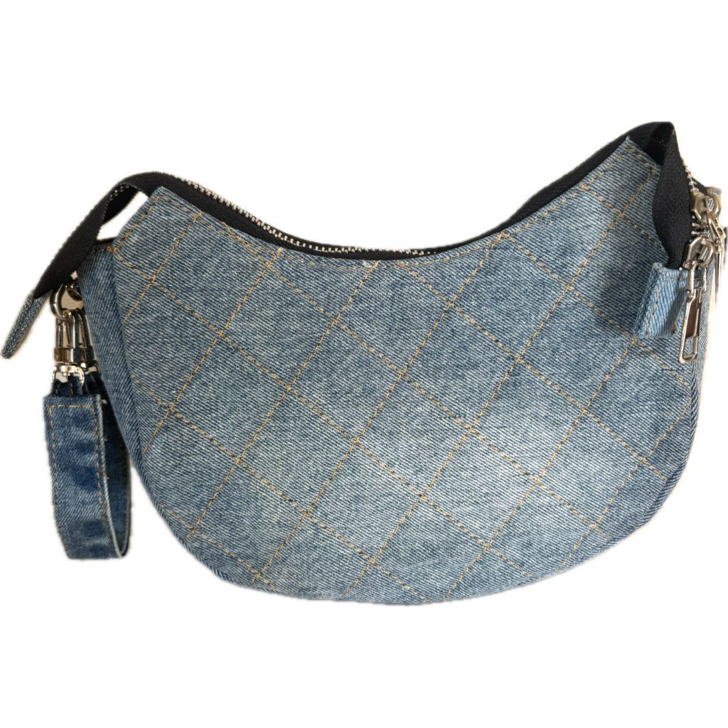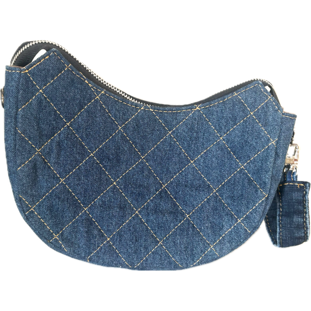 ベトナムの職人がデニムをリサイクルして丁寧に製法したバッグ。付属のチェーンを付ければショルダーバッグにもなります。