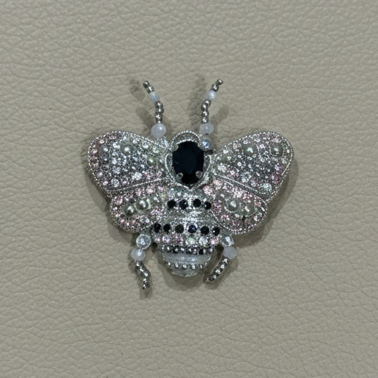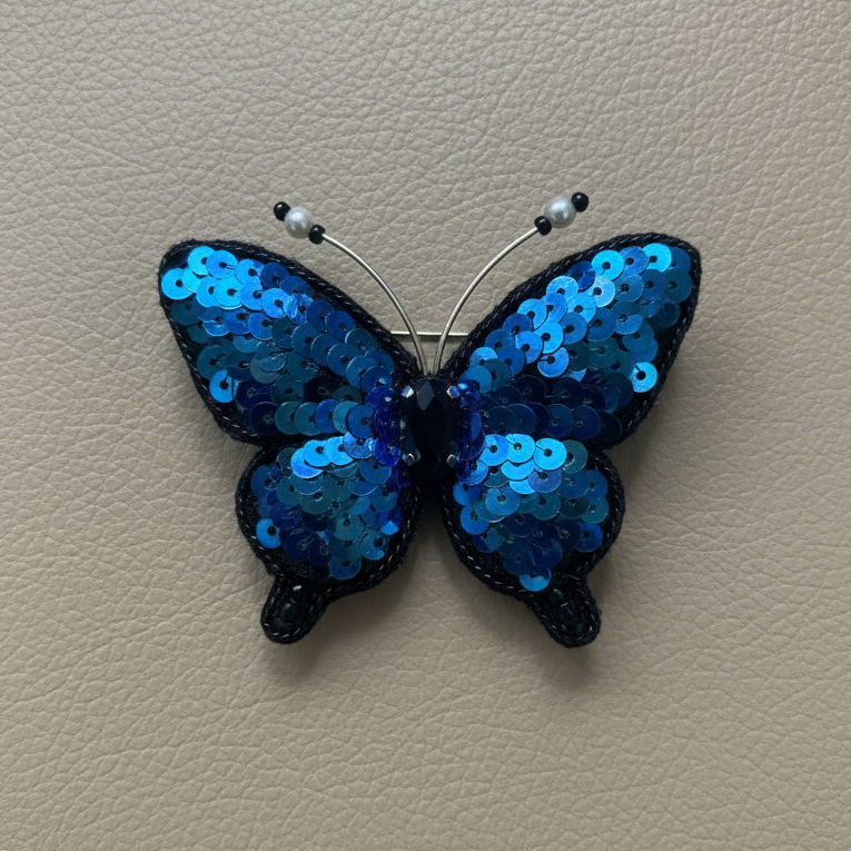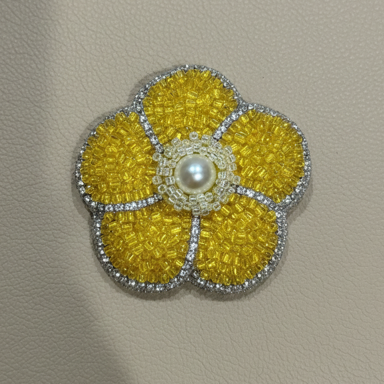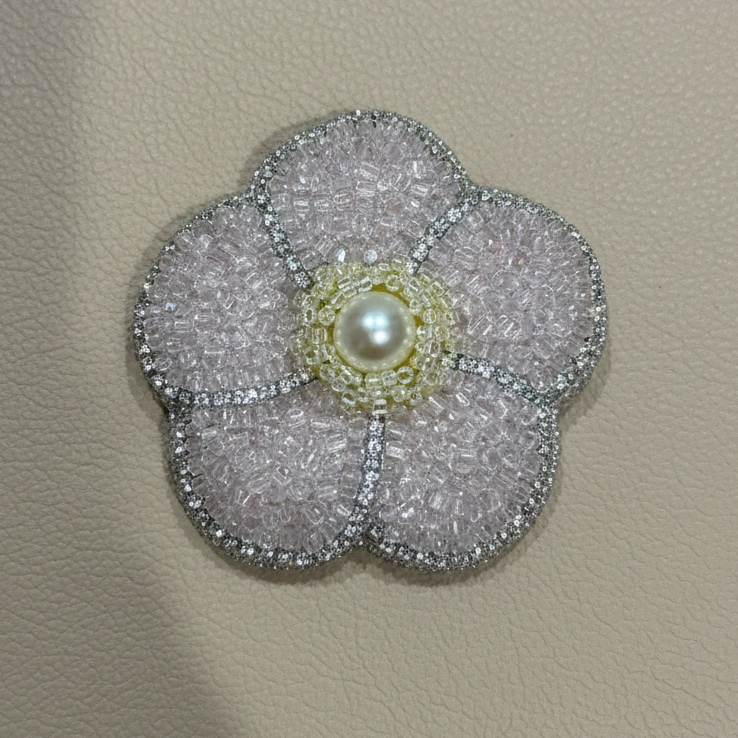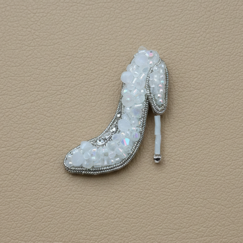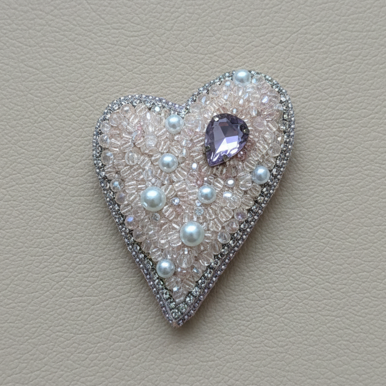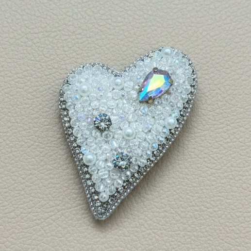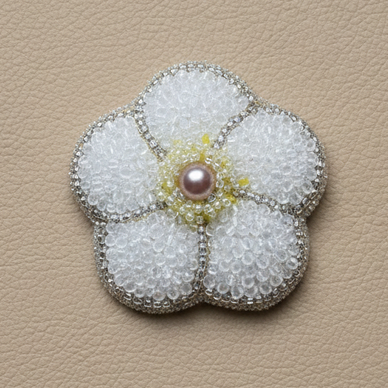 職人がひと針ひと針手縫いで仕上げ、丁寧に時間をかけて作るブローチです。使われているガラスビーズは美しい輝きを放つ日本製で高品質。